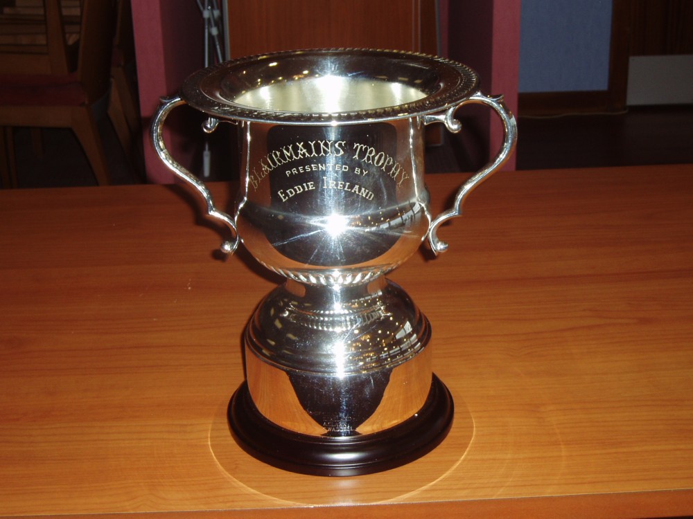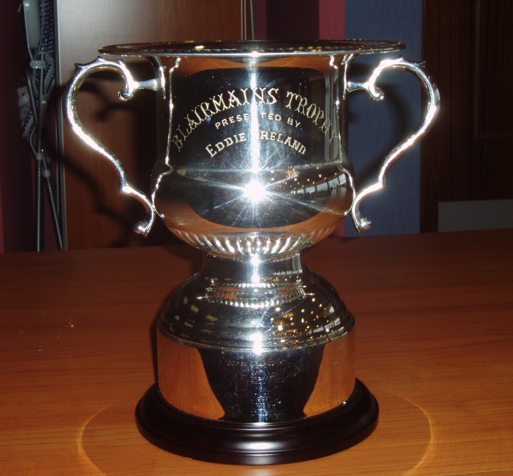 The Torrance Trophy (left two photos) is now presented to the Pairs winners while the Moffat Cup is presented to the winner of the Points competition: